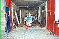 Ohne Rahmen und vorderem Aufbau nun schon merklich leichter. Der Unterboden war primär nicht gestrahlt worden, es sollt nur eine Front-End-Restaurierung werden, keine Frame-off. Jetzt wären allerdings nur noch der Tank und die Hinterachse im Weg, Brems- und Benzinleitungen müssen ohnehin ersetzt werden... Doch noch mal zum Sandstrahlen? Andererseits ist der Unterboden - soweit mit Unterbodenschutz beurteilbar - bis auf die bekannte Stelle vorne rechts intakt. Mal überlegen und das Budget befragen... |