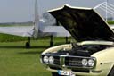 Nächster Tag, Gewitter vorbei, Strassen noch nass, ich fluchend zum Flughafen Egweil unterwegs... Dort erstmal Auto notdürftig von Spritzern befreit -- 4 Wochen schönstes Wetter und ausgerechnet jetzt am Tag zuvor Regen! - dann die Bekanntschaft von Reinhold Weinretter und seinem Sohn gemacht. Beides total lockere Gents, Reinhold Profifotograph. Beide ebenso wie ich nicht zufällig am Flughafen, sondern das ganze im Rahmen eines Weihnachtsgeschenks: ein professionelles Fotoshooting vom Bird, wenn denn einmal fertig... Idee: Silvia Brandl (meine Frau). Mitwirkende: Reinhold, sein Sohn, Silvia und meinereiner und - last but not least - die Haupt-"person", hier bereits in Szene gesetzt: mein 68er Firebird! |