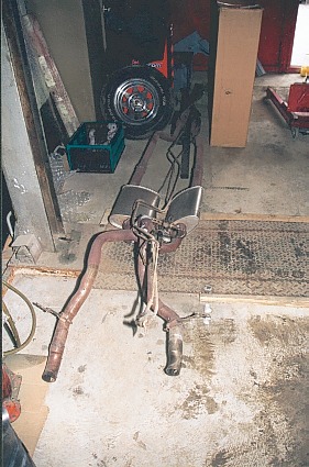 Das war sie - die eher schlecht als recht zusammengesch...usterte Auspuffanlage. Künftig soll Edelstahl das Ganze ein bisschen aufpeppen. Dazu muß ich allerdings erst jemanden finden, der Edelstahl schweißen kann und bezahlbar bleibt. |