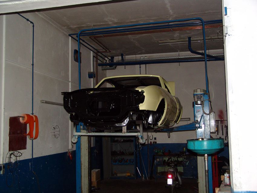 | Die „gesammelten Werke“! Schön zu sehen: die Motorhaube, die eigentlich auf einen 350er Motor gehört. Jetzt ist ein 400er Block aus einem 68er GTO vorgesehen (baugleich zum 68er 400er Firebird), eigentlich gehört hierzu eine andere Motorhaube mit zwei kleinen angedeuteten Lufthutzen. Ich finde die 350er Motorhaube aber in sich stimmiger, die Linien sind schöner – und daher blieb´s erstmal dabei! Später allerdings setzte sich dann doch der Originalitätswahn durch und die "korrekte" Haube wurde nachgerüstet -- hierzu ab Seite 23 mehr... :-) | |
